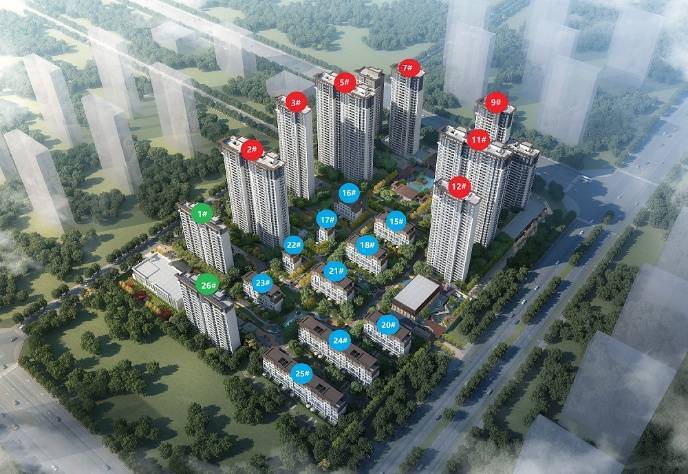 西安中康华府售楼处坐落欧亚大路与港宁路交汇处东南角,供给260户3栋楼的改进好房,绿化率约35%,容积率约2.5,车位配比约1:1.5,总户数约260户。