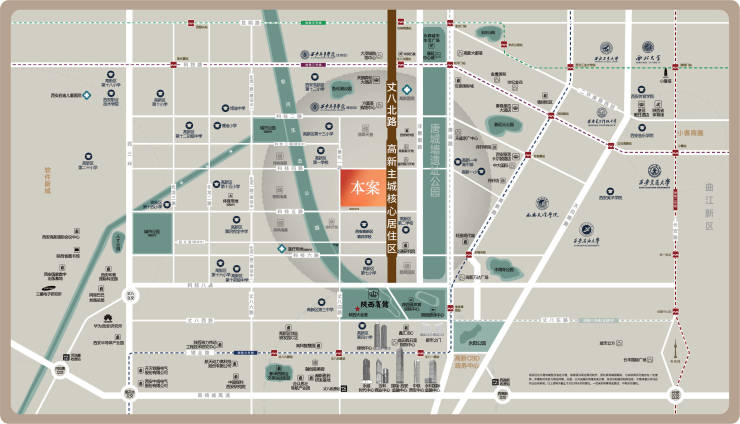 辐射唐延路商圈、科技路商圈、锦业路商圈,高新万达、中大世界、高新大都荟、T11商业街区、方圆荟、益田假期六合、大茂城等尽聚于此